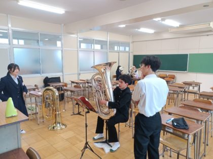 朝と昼休みに昇降口付近で白ブレザーを着た部員がいるので、楽器体験に参加したい人は気軽に声かけて予約をしてください!