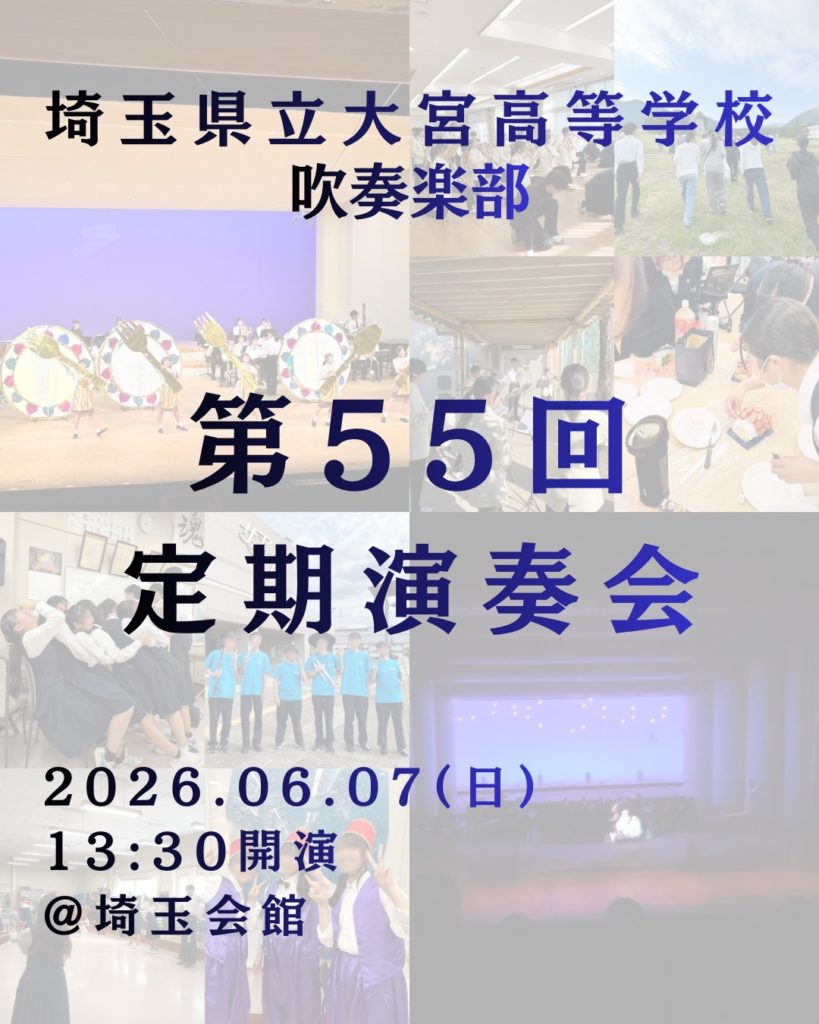 私たち大宮高校吹奏楽部は、2026年6月7日(日)に埼玉会館にて第55回定期演奏会を開催いたします。
